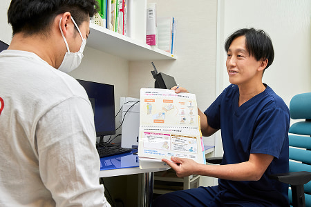 保険診療での薬物治療は12週間かかります。その間に5回の診察があります。中断しないように、お手伝いをします。