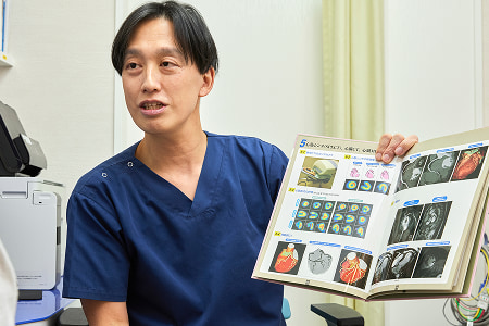 まずは、当院にて一通りの検査を行い、狭心症を疑う場合は、冠動脈CTやカテーテル検査といった、病院での検査が必要になりますので、精密検査のための病院をご紹介します。